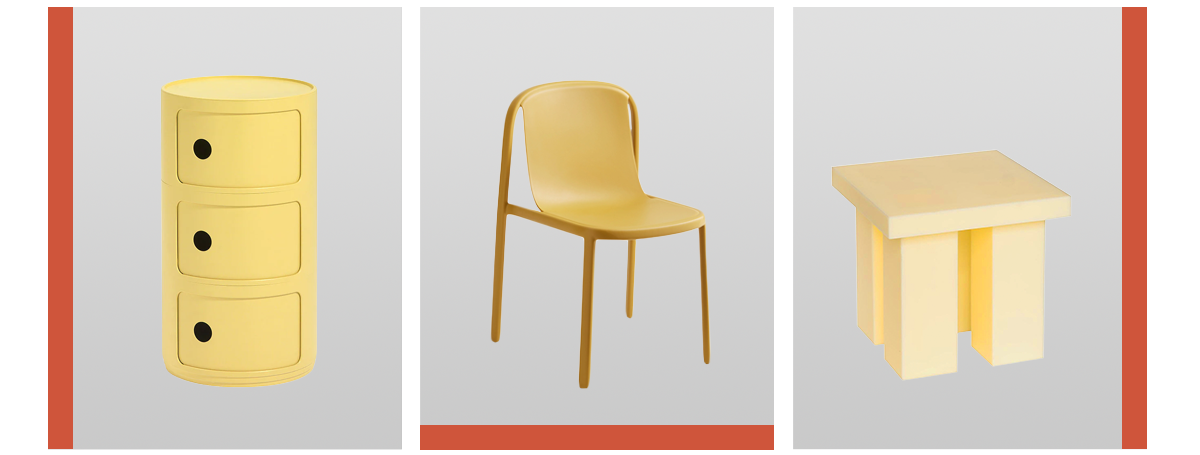 Tables A color this playful makes total sense on these chunky, low surfaces.